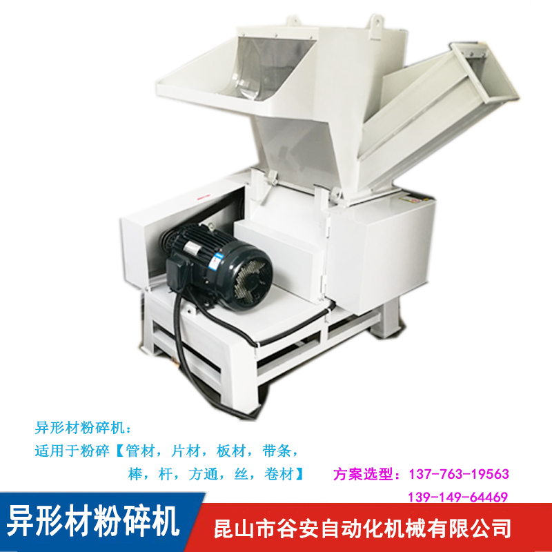 針對(duì)管材的長(zhǎng)尺寸,片材的寬幅度,谷安設(shè)計(jì)了不同的入料方式,適用于各種異形材料的快速投喂,使粉碎回收更加高效方便。